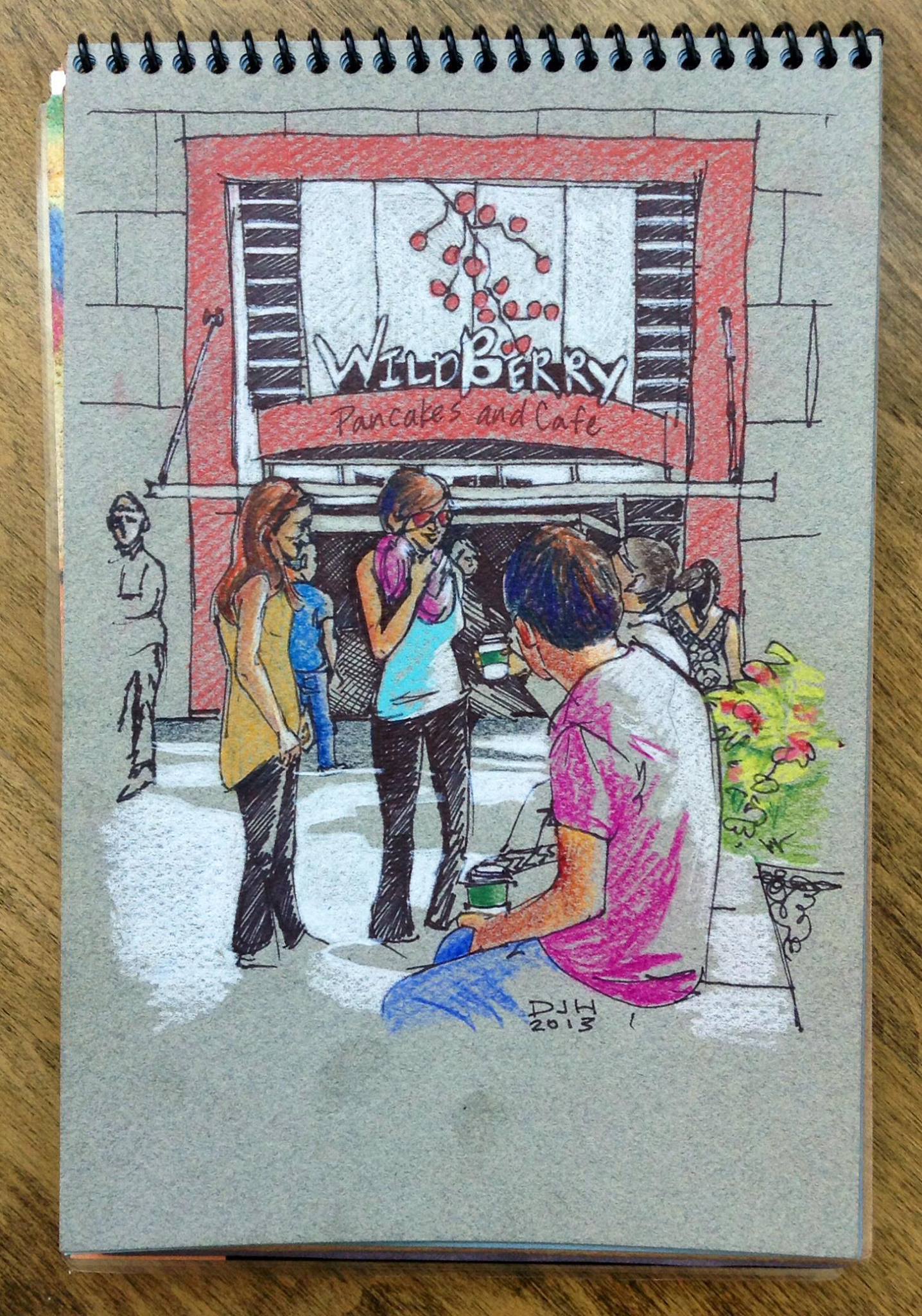 Color Pencil on Tinted Pastel Paper, Wildberry- Pancakes and Cafe, Chicago – Available