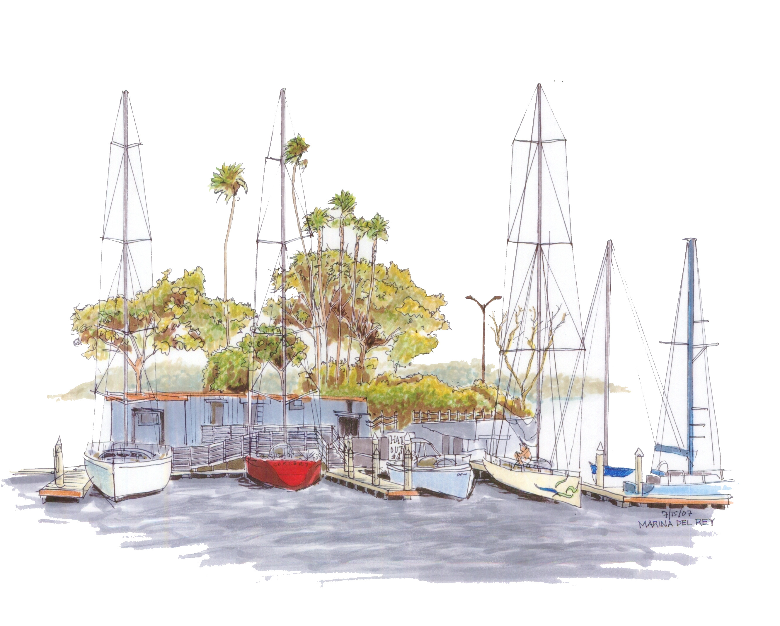 Color Pencil on Tinted Pastel Paper, Chicago Marina – Available