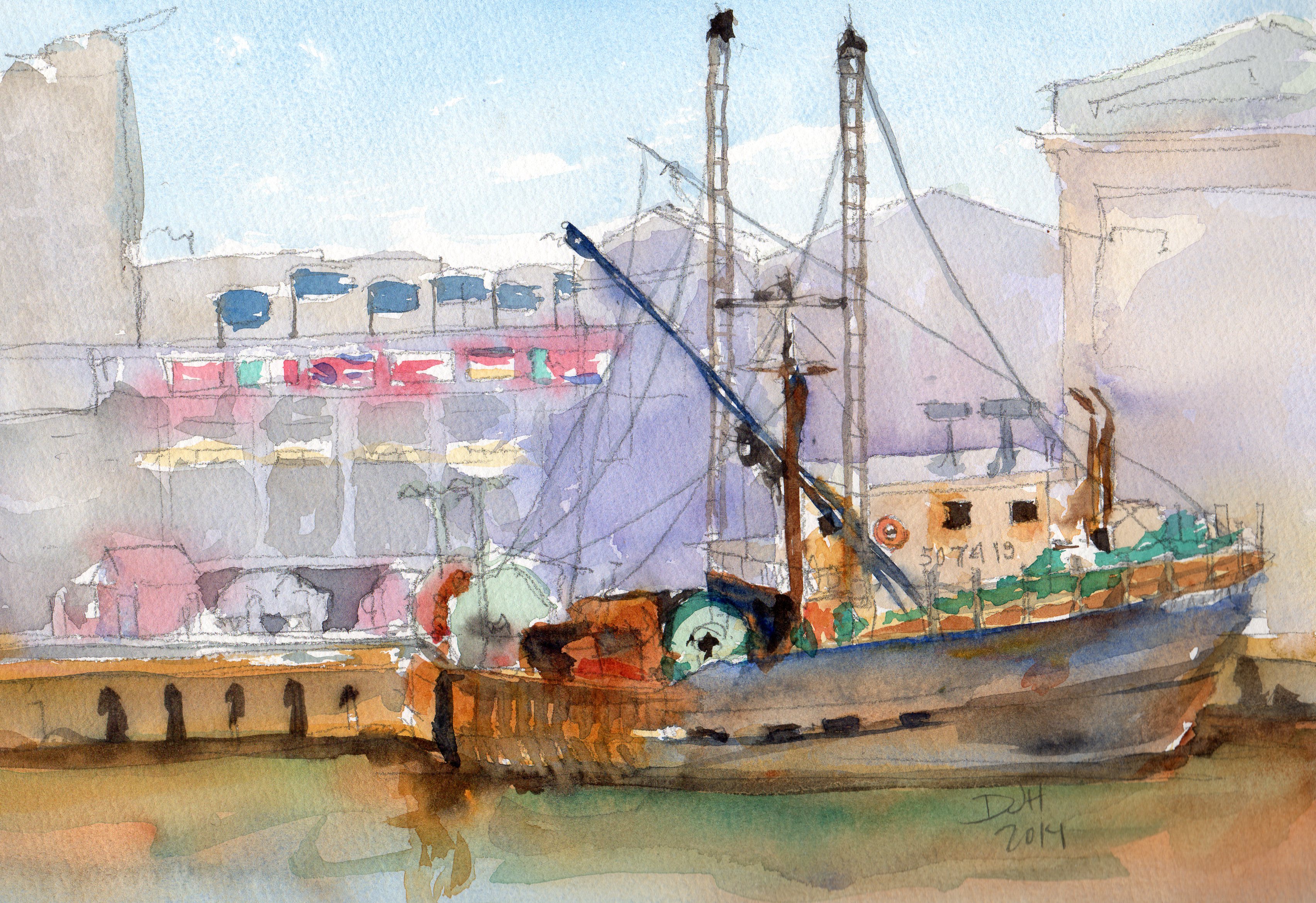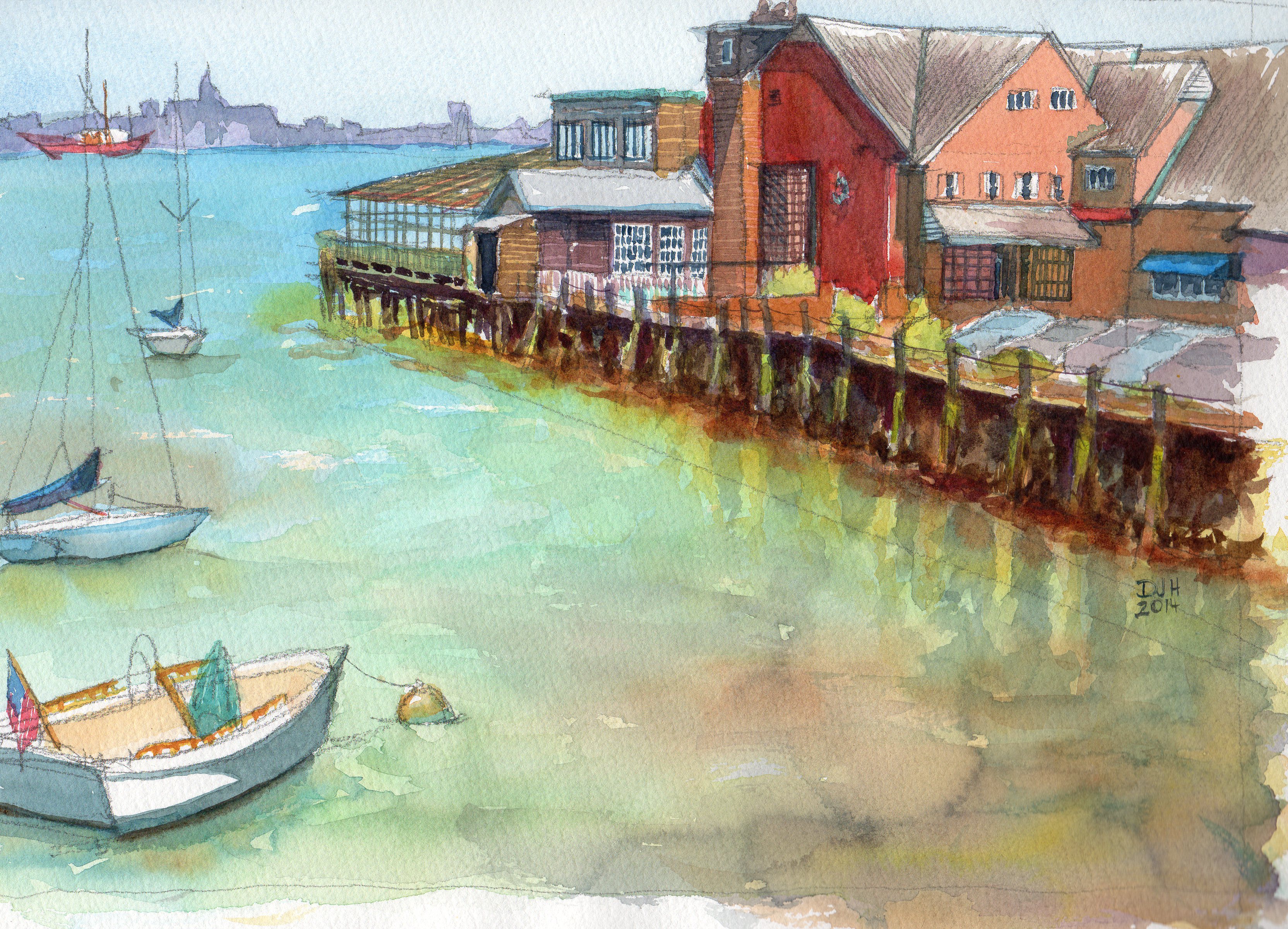 9×12 Watercolor, Fisherman’s Pier Boston, Massachusetts – Available